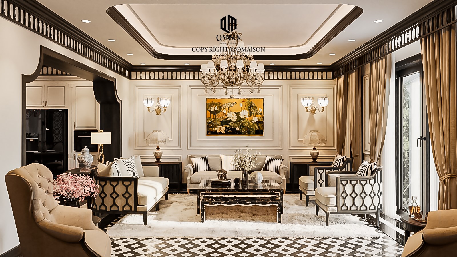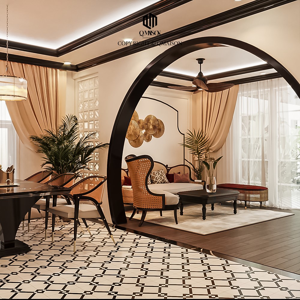 Một trong những dự án của Q Maison gần đây là Saigon Pearl Villa, biệt thự tại khu đô thị ven sông nổi tiếng với không gian sống chuẩn 5 sao và hệ thống tiện ích hoàn chỉnh. Dự án lần này là căn villa 265 m² được thiết kế theo phong cách Indochine, kết hợp nét Á Đông thanh lịch với tinh thần hiện đại.