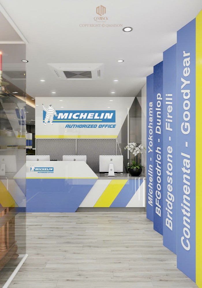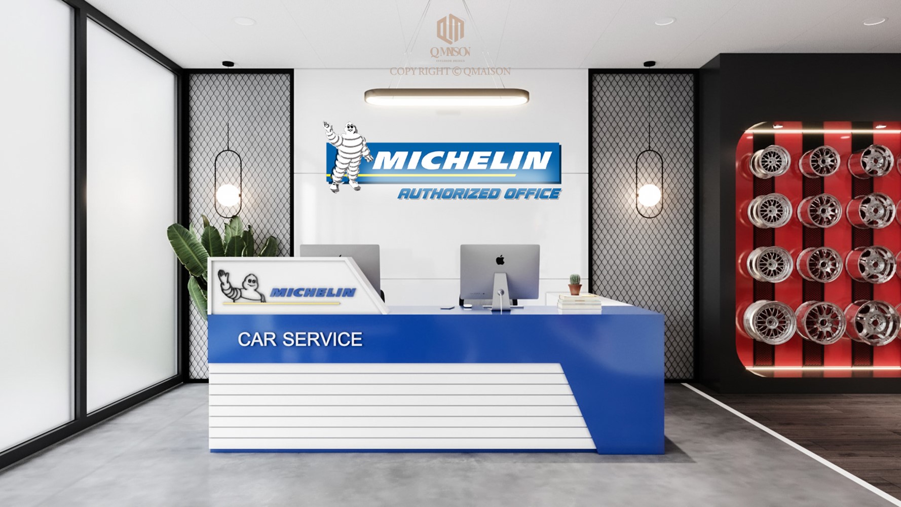 Trong dự án thiết kế cho văn phòng Michelin Authorized tại TP.HCM, Q Maison hướng đến một không gian làm việc hiện đại, chuyên nghiệp nhưng vẫn gắn liền với bản sắc thương hiệu. Trên diện tích 220m², bố cục văn phòng được tổ chức mở, đảm bảo sự liền mạch trong lưu thông và tăng khả năng tương tác giữa các bộ phận.