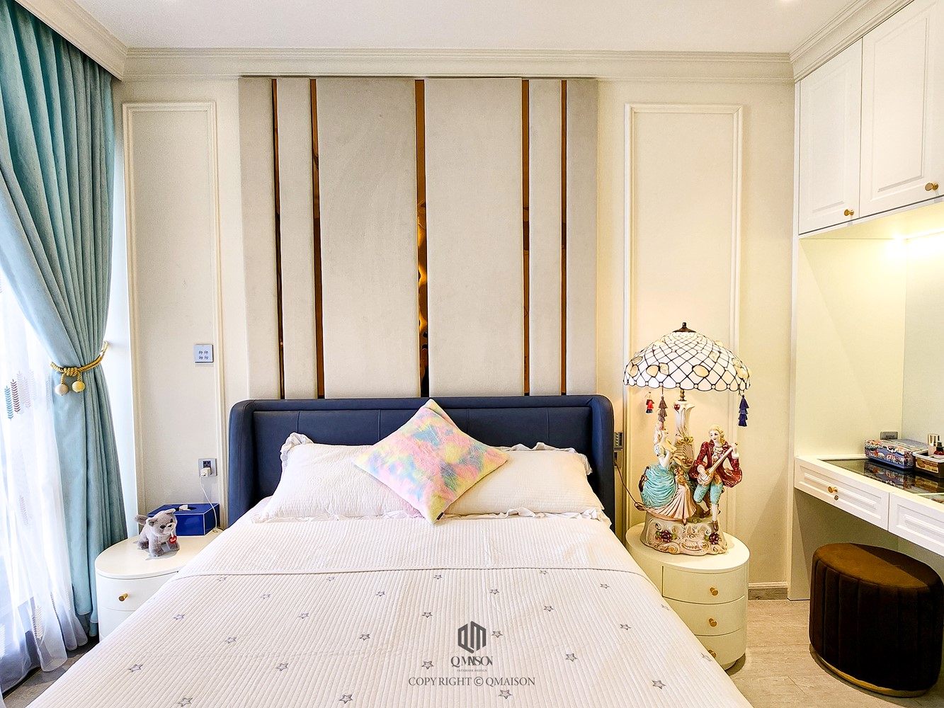 Căn hộ Vinhomes Golden River do Q Maison thực hiện cho thấy sự chuyển dịch rõ ràng từ phối cảnh sang không gian sống thực tế, nơi các giá trị thiết kế được kiểm chứng bằng độ chính xác và chất lượng hoàn thiện. Ngôn ngữ Neo Classic được thể hiện qua hệ phào chỉ ốp tinh gọn, tỷ lệ đối xứng được cân chỉnh và tiết chế để phù hợp với căn hộ 1 phòng ngủ mà vẫn giữ được chiều sâu thẩm mỹ.
