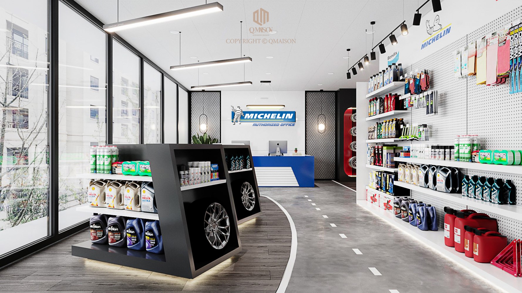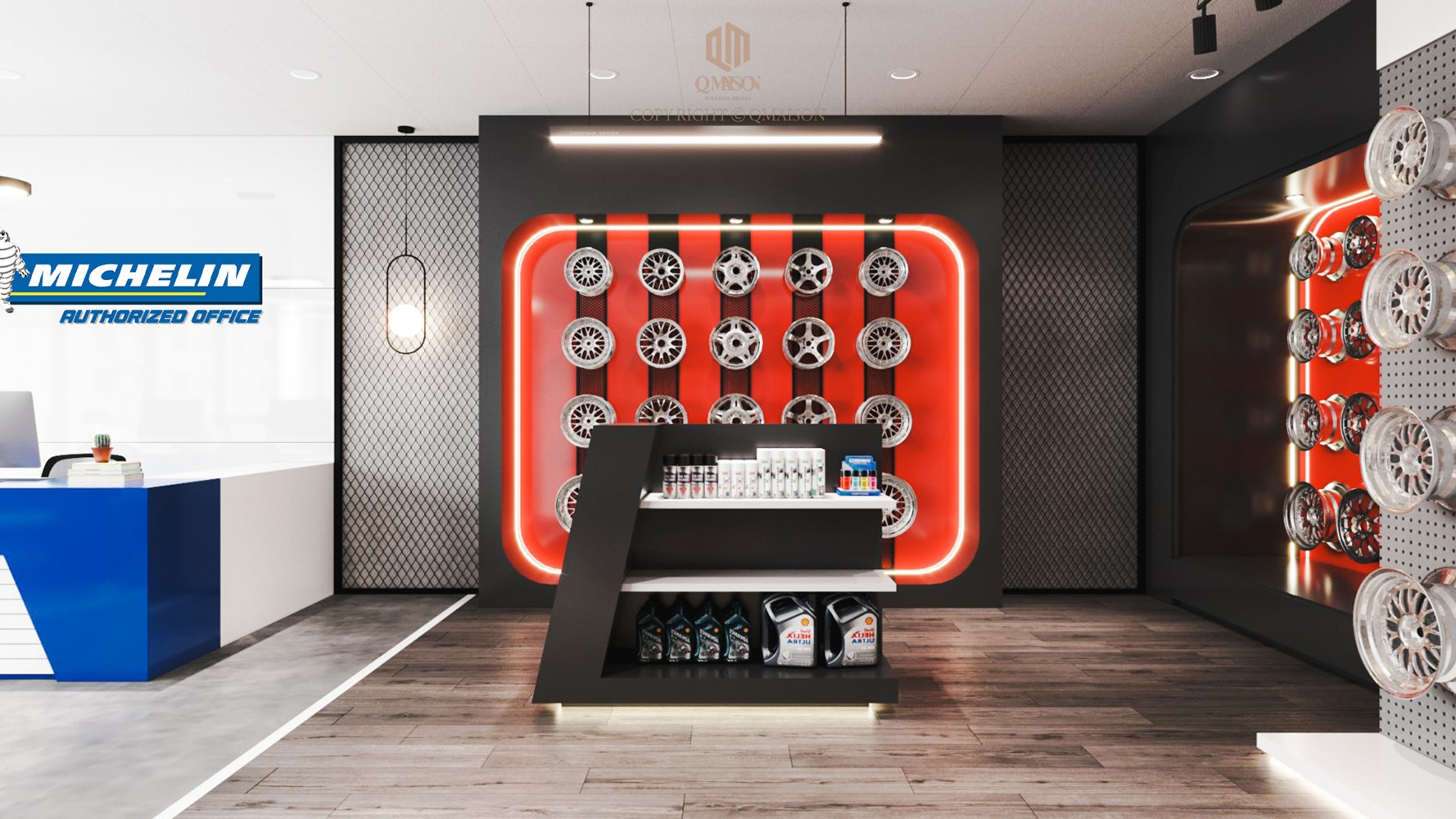 Trong dự án thiết kế cho văn phòng Michelin Authorized tại TP.HCM, Q Maison hướng đến một không gian làm việc hiện đại, chuyên nghiệp nhưng vẫn gắn liền với bản sắc thương hiệu. Trên diện tích 220m², bố cục văn phòng được tổ chức mở, đảm bảo sự liền mạch trong lưu thông và tăng khả năng tương tác giữa các bộ phận.